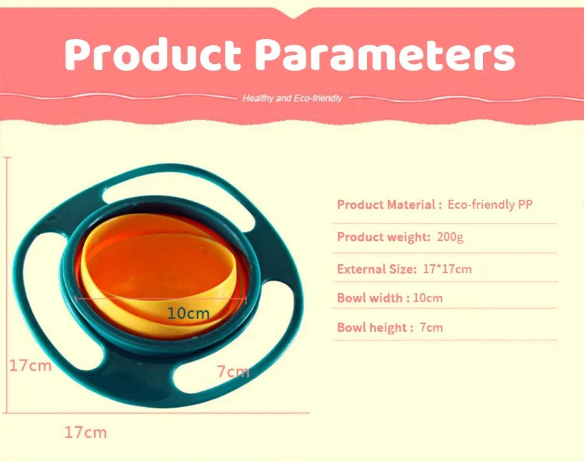 🌟 No More Mealtime Mess – With its clever spill-proof design, the Baby Feeding Gyro Bowl is the ultimate solution to avoid the chaos of spilled food, offering both you and your little one a stress-free feeding experience.